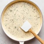 - The sauce thickens quickly as it cools; if too thick, thin it out with a splash of broth, additional cream, or pasta water when serving.