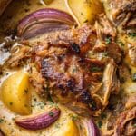 This Apple Cider Braised Pork Shoulder recipe features tender, flavorful pork slow-cooked in a fragrant braising liquid of fresh apple cider, chicken stock, and aromatic herbs. Finished with roasted apples and onions, this dish combines sweet, savory, and herbal notes, perfect for a comforting meal that feeds a crowd.