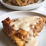 This Apple Cinnamon Baked Oatmeal is a cozy and wholesome fall breakfast bake, featuring rolled oats soaked in milk and eggs, sweetened with coconut brown sugar and flavored with warm spices like cinnamon and nutmeg. Tender diced apples baked throughout add a fresh fruity touch. Topped with a creamy honey-sweetened yogurt frosting, this dish makes a comforting and satisfying start to the day. Perfect for meal prep, it reheats beautifully and can be enjoyed warm or at room temperature.