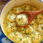 A hearty and comforting dish featuring tender chicken cooked in a flavorful vegetable broth with peas and seasoned dumplings made from Bisquick. This classic chicken and dumplings recipe uses simple ingredients and a Dutch oven to create a delicious family-friendly meal perfect for any day.