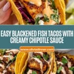 - Assemble the Fish Tacos: Warm the corn tortillas. Fill each tortilla with shredded purple cabbage, a portion of blackened fish, chopped fresh cilantro, and crumbled Cotija cheese. Drizzle generously with the prepared chipotle lime sauce. Serve immediately with lime wedges on the side.