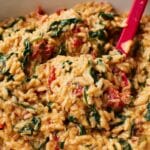 - Add spinach: Carefully remove the foil and stir in the fresh spinach. The residual heat will wilt the spinach nicely into the pasta mixture.