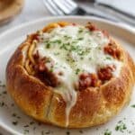 This Bread Bowl Spaghetti recipe offers a deliciously comforting twist on classic spaghetti by serving it in warm, garlicky bread bowls filled with seasoned ground beef spaghetti and melted mozzarella cheese. Perfect for a cozy family dinner or gathering, these individual servings combine tender spaghetti noodles simmered in rich tomato sauce with a crispy, buttery bread exterior.