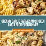 - Combine pasta and sauce: Add the drained pasta into the skillet with the sauce and chicken. Stir thoroughly until the pasta is fully coated with the creamy garlic parmesan sauce.