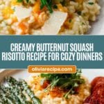 This creamy and comforting Butternut Squash Risotto is a delicious fall-inspired dish featuring roasted butternut squash, arborio rice cooked to perfection, and finished with parmesan cheese and fresh herbs. Perfect as a meatless entree or a hearty side, this risotto combines tender roasted squash with a rich, flavorful base made with chicken or vegetable stock and a splash of white wine.