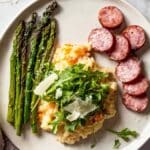- Serve: Dish the risotto onto plates or bowls, topped with the remaining parmesan cheese and a sprinkling of arugula or your choice of parsley or sage for a fresh finish.