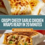 These Cheesy Garlic Chicken Wraps are an easy, crispy, and flavor-packed meal perfect for a quick lunch or dinner. Tender, seasoned chicken mixed with garlic, mayo, yogurt, and hot sauce is wrapped in tortillas with melted cheddar cheese and green onions, then pan-cooked until golden and crispy. This recipe provides a delicious combination of creamy, spicy, and cheesy flavors in a convenient handheld wrap.