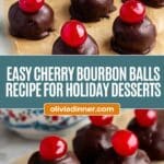 Delight in these Cherry Bourbon Balls, a luscious no-bake treat combining the rich flavors of bourbon-soaked pecans, maraschino cherries, and a smooth chocolate coating. Perfect for holidays or special occasions, these bite-sized confections offer a perfect balance of nutty crunch, fruity sweetness, and chocolaty decadence.