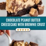 Chocolate Peanut Butter Reese’s Cheesecake with Brownie Crust and Ganache Topping Recipe