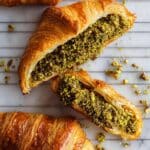 - Fill the Croissants: Evenly spread the chocolate and pistachio mixture onto each sliced croissant, ensuring every bite is packed with flavor.