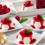 Classic Vanilla Panna Cotta with Raspberry Sauce is a smooth and creamy Italian dessert made with milk, cream, sugar, and gelatin, infused with pure vanilla extract. It is elegantly paired with a fresh raspberry sauce made from real raspberries and sugar, cooked down to a thick, flavorful topping. This make-ahead dessert is perfect for any occasion and offers a delicate balance of rich creaminess with bright, fruity tartness.