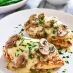 - Add Toppings and Melt Cheese: Once the chicken is cooked, top each piece with the sautéed onions, mushrooms, and a generous amount of shredded Monterey Jack cheese. Reduce the heat to low and cover the skillet or turn off the stove to allow the cheese to melt slowly without burning the chicken.