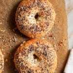 - Add seasonings (optional): If you’d like, brush the bagel tops with whisked egg to create a glossy finish and press your chosen seasonings into the dough.