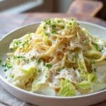 Creamy Alfredo Cabbage Pasta is a delightful, comforting dish featuring tender sautéed cabbage blended into a rich, creamy Alfredo sauce served over al dente pasta. This easy-to-make recipe combines buttery garlic cabbage with Parmesan-infused cream sauce, offering a unique twist on classic Alfredo pasta. Perfect for a weeknight meal, it can be customized with optional add-ins like chicken and sun-dried tomatoes for added flavor and protein.