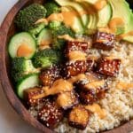 - Assemble the Bowls: Divide cooked rice among bowls. Add cucumber salad, sautéed broccoli, avocado slices, and salmon bites. Drizzle with bang bang sauce. Optionally, add extra coconut aminos, teriyaki sauce, green onions, or sesame seeds for added flavor.