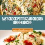Try plating the chicken on a bed of creamy polenta, then drizzle the Tuscan sauce and spinach over it for an elegant touch. Or, serve it family-style straight from the slow cooker at the table, garnished with fresh herbs, for a cozy, inviting presentation that sparks conversation.