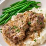 Slow-cooked Cubed Steak in a rich and creamy onion gravy made easy in a crockpot. Tender cubed steaks are seared, then slow braised with savory herbs, garlic, onions, and Worcestershire sauce, finished with a touch of heavy cream for a comforting and flavorful meal.