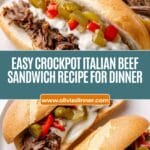 This Crockpot Italian Beef Sandwich recipe delivers tender, flavorful shredded beef seasoned with zesty Italian spices, slow-cooked to perfection and served on toasted hoagie rolls with your choice of cheese. Perfect for an easy weeknight meal or game day feast.