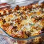 A hearty, savory Croissant Breakfast Casserole featuring browned pork sausage, sautéed onions and spinach, mixed with cubed croissants and a rich custard of eggs and cream. This make-ahead dish is perfect for a comforting breakfast or brunch, baked until golden and set.