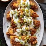This Dill Pickle Parmesan Chicken recipe features juicy, tender chicken breasts seasoned with a flavorful blend of spices, topped with a creamy dill pickle ranch and Parmesan mixture, and finished with a crispy breadcrumb and Parmesan crust. Air-fried to perfection for a quick and delicious meal, it’s garnished with fresh dill and extra ranch dressing, making it a unique and satisfying dinner option bursting with tangy and savory flavors.