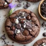 Indulge in these rich and decadent Double Chocolate Cookies and Cream Cookies, featuring a perfect blend of cocoa, chocolate chips, and a surprise Hershey’s Cookies ‘n Cream candy bar center. These large, soft-baked cookies combine intense chocolate flavor with creamy cookie bits for an irresistible treat that’s perfect for chocolate lovers.