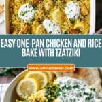 This Dump-and-Bake Chicken Tzatziki and Rice is a simple, one-pan meal that combines marinated chicken, aromatic spices, tender rice, and grated zucchini baked to perfection. The dish is finished with refreshing tzatziki sauce, fresh herbs, and lemon for a Mediterranean-inspired dinner that’s both flavorful and easy to prepare.