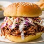 These Easy BBQ Beef Brisket Sandwiches combine tender beef brisket with melted provolone cheese and crunchy coleslaw for a flavorful and quick meal. The sandwiches are easy to assemble, featuring a smoky BBQ sauce and a perfectly toasted bun with melted cheese, ideal for a satisfying lunch or casual dinner.