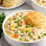 - Serve: Spoon the warm chicken pot pie filling into bowls or plates and serve alongside or topped with freshly baked biscuits for a satisfying meal.
