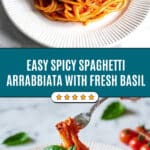 Finish off by scattering fresh basil leaves over the pasta, adding a pop of color and aromatic brightness. Now your Easy Spicy Spaghetti Arrabbiata Recipe is ready to bring smiles around the dinner table.