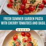 This Easy Summer Garden Pasta is a light, fresh, and perfect dinner option featuring juicy cherry tomatoes, fragrant basil, and tender angel hair pasta tossed in a flavorful olive oil and garlic marinade. Marinated for hours to enhance the vibrant garden flavors, this dish is quick to prepare, naturally gluten-free if using GF pasta, and can be made vegan by omitting the Parmesan cheese.