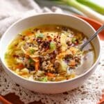 This comforting Egg Roll Soup features ground pork, fresh vegetables, and a savory broth infused with sesame oil, ginger, and garlic. Loaded with shredded cabbage and carrots, it captures the classic flavors of an egg roll in a warm, hearty soup perfect for any day.