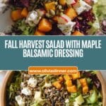 This Fall Harvest Salad with Honey Balsamic Vinaigrette combines roasted butternut squash, cooked farro, mixed greens, crunchy pumpkin seeds, dried cranberries, and crisp honey crisp apples in a vibrant, nutritious salad. Tossed in a sweet and tangy maple vinaigrette, this salad makes for a perfect seasonal dish that balances earthy roasted flavors with fresh and fruity notes.