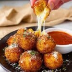 Delight in these Fried Cheese Balls, a crispy and gooey snack made with a blend of mozzarella and sharp cheddar cheeses, coated in a flavorful Parmesan-Panko crust and fried to golden perfection. Perfectly crispy on the outside and irresistibly melty inside, they make a fantastic appetizer or party treat.