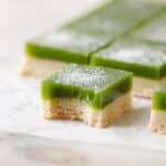 These Gluten-Free Lemon Matcha Bars are bright, fresh, and irresistibly delicious. Featuring a crisp vegan shortbread crust topped with a vibrant lemon matcha curd, they’re perfect for a refreshing treat that combines tangy citrus flavors with the earthy notes of ceremonial grade matcha. Easy to make and naturally gluten-free, they set beautifully in the fridge and make a stunning dessert or snack.