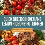 This vibrant and flavorful Greek Chicken and Lemon Rice recipe combines tender, seasoned chicken thighs with a zesty lemon-infused rice loaded with fresh spinach, grape tomatoes, and chickpeas. Topped with a tangy feta cheese mixture and fresh oregano, this one-pot meal is perfect for a quick, healthy, and satisfying dinner that’s ready in just 30 minutes.