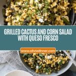 This Grilled Cactus and Corn Salad features tender, charred cactus paddles and smoky sweet corn tossed with fresh onion, garlic, lime juice, and topped with cilantro and queso fresco. It’s a vibrant, fresh salad perfect for summer gatherings or as a unique side dish with Mexican-inspired meals.
