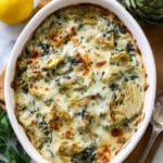 This Healthy Spinach Artichoke Chicken Casserole is a delicious and nutritious one-dish meal combining tender shredded chicken, creamy cottage cheese and sour cream, fresh spinach, artichoke hearts, and plenty of melted mozzarella. Baked to golden perfection, this casserole is perfect for a wholesome family dinner or meal prep and offers a balanced flavor with garlic, thyme, and fresh lemon zest.