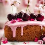 - Decorate and Serve: Drizzle the cooled cake with cherry icing and top with extra fresh cherries. Slice and serve the cake with a dollop of cherry sauce.
