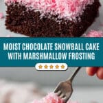 This Hostess Snowball Cake is a fluffy, chocolatey treat topped with a creamy marshmallow fluff frosting and sweet, pink-colored coconut, perfect for any celebration or dessert craving.