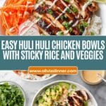 - Assemble the bowls: Spoon 2-3 cups of cooked sticky rice evenly onto four plates or pasta bowls. Lay the sliced huli huli chicken on top of the rice in the center.