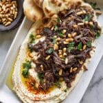 This Hummus with Meat recipe features tender, slow-baked chuck roast seasoned with a flavorful blend of spices, served over a creamy layer of hummus. Enhanced with roasted onions and garlic, this dish brings a delicious Middle Eastern-inspired meal perfect for serving with pita bread or naan. The optional toasted pine nuts and fresh parsley add a gourmet touch to this comforting and hearty entrée.
