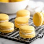 - Assemble the macarons: Fill a piping bag fitted with a small round tip (or use a ziplock bag) with lemon buttercream. Pipe a border of buttercream around the edge of half the macaron shells, spoon or pipe about 1/2 teaspoon of lemon curd into the center, then sandwich with another shell on top, pressing lightly to adhere.
