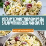 A refreshing and flavorful Lemon Tarragon Pasta Salad featuring bowtie pasta, juicy grapes, crunchy celery, tender chicken, and a zesty lemon-tarragon dressing. Perfect for a light lunch, picnic, or potluck.