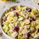 A refreshing and flavorful Lemon Tarragon Pasta Salad featuring bowtie pasta, juicy grapes, crunchy celery, tender chicken, and a zesty lemon-tarragon dressing. Perfect for a light lunch, picnic, or potluck.