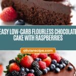 This low-carb flourless chocolate cake is rich, moist, and packed with intense chocolate flavor without using traditional flour. Made with almond and coconut flours along with raw cacao and a natural sweetener, this recipe is perfect for those seeking a gluten-free, low-carb dessert option. Finished with a luscious dark chocolate coconut milk frosting and fresh raspberries, it’s a decadent yet healthy treat suitable for various dietary preferences.