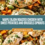 Maple Dijon Roasted Chicken with Fall Veggies is an easy one-pan dinner featuring tender skinless chicken breasts roasted alongside sweet potatoes and Brussels sprouts. The dish is glazed with a flavorful maple Dijon sauce combining tangy mustard, sweet maple syrup, and zesty lemon juice, making it perfect for a cozy fall meal.