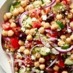 A refreshing and vibrant Mediterranean Chickpea Salad featuring crisp vegetables, tangy feta, and a zesty lemon-olive oil dressing. Perfect as a light meal or a healthy side, this easy no-cook salad combines wholesome ingredients for a nutritious, flavorful dish.