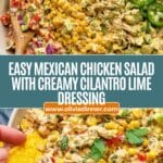 A vibrant Mexican Chicken Salad featuring tender chicken breast, fire-roasted corn, fresh veggies, and creamy cotija cheese, all tossed in a zesty cilantro lime crema. Perfect for a healthy lunch or light dinner with a flavorful twist.