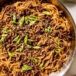 Mongolian Ground Beef Noodles is a quick, savory dish combining tender ground beef cooked with aromatic ginger and garlic, tossed with soft rice noodles in a rich, sweet soy-based sauce. Garnished with fresh green onions and sesame seeds, this comforting Asian-inspired meal is perfect for a speedy weeknight dinner.