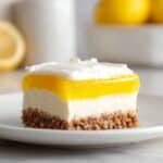 - Assemble Lemon Layer: Once the lemon pudding is fully cooled, pour it evenly over the cream cheese layer. Return the dish to the refrigerator and chill for 2-3 hours until the lemon layer is firmly set.